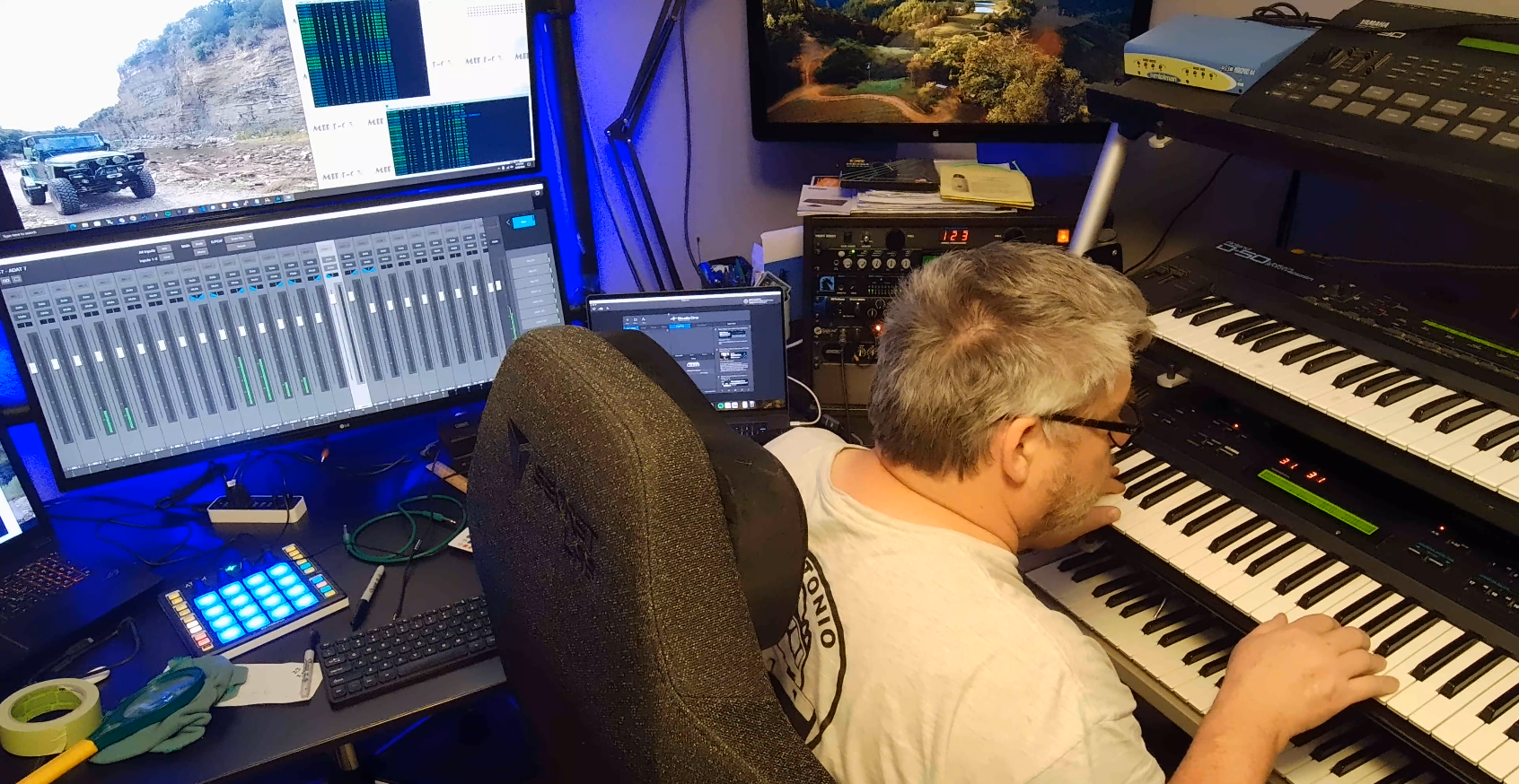 Open WSJT-X RelayJesse has been playing and writing music since he was 8 years old. Starting out on piano, his interest in computers and programming in high school collided with his music interest in the mid 80's with the release of the Yamaha DX-7. He still uses his DX-7II as his main synth, but he also has another 80's classic synth - Roland D-50 along with several other modules, drum machines from the 90's and 2000's. He also plays bass and drums.